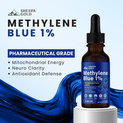 Sherpa Gold Methylene Blue 1% delivers a pharmaceutical-grade formulation for those seeking precision and purity. Crafted with USP-grade Methylene Blue Trihydrate, this solution is manufactured in the USA using high-purity ingredients and reverse-osmosis water for optimal clarity and consistency.